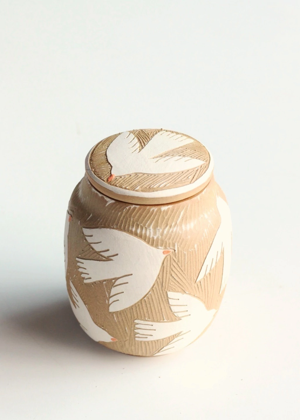 Frasco de cerámica decorado a mano.